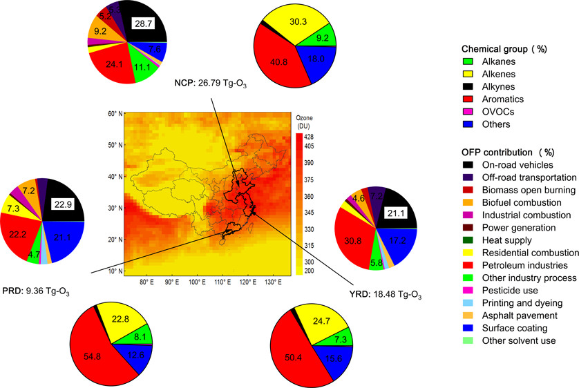 摘要: Ozone (03) pollution is becoming increasingly severe in China. In addition, our limited understanding of the relationship between 03 and volatile organic compounds (VOCs), is an obstacle to improving air quality. By developing an improved source-oriented speciated VOC emission inventory in 2013, we estimated the ozone formation potential (OFP) and investigated its characteristics in China. Besides, a comparison was made between our estimates and space-based observations from the ozone monitoring instrument (OMI) on the National Aeronautics and Space Administration (NASA)'s Aura satellite. According to our estimates, m-/p-xylene, ethylene, formaldehyde, toluene, and propene were the five species that had the largest potential to form ozone, and on-road vehicles, industrial processes, biofuel combustion, and surface coating were the key contributing sectors. Among different regions of China, the North China Plain, Yangtze River Delta, and Pearl River Delta had the highest OFP values. Our results suggest that 03 formation is VOC-limited in major urban areas of China. Additionally, considering the different photochemical reactivities of various VOC species and the disparate energy and industry structures in the different regions of China, more efficient OFP-based and localized VOC control measures should be implemented, instead of the current mass-based and nationally uniform policies.