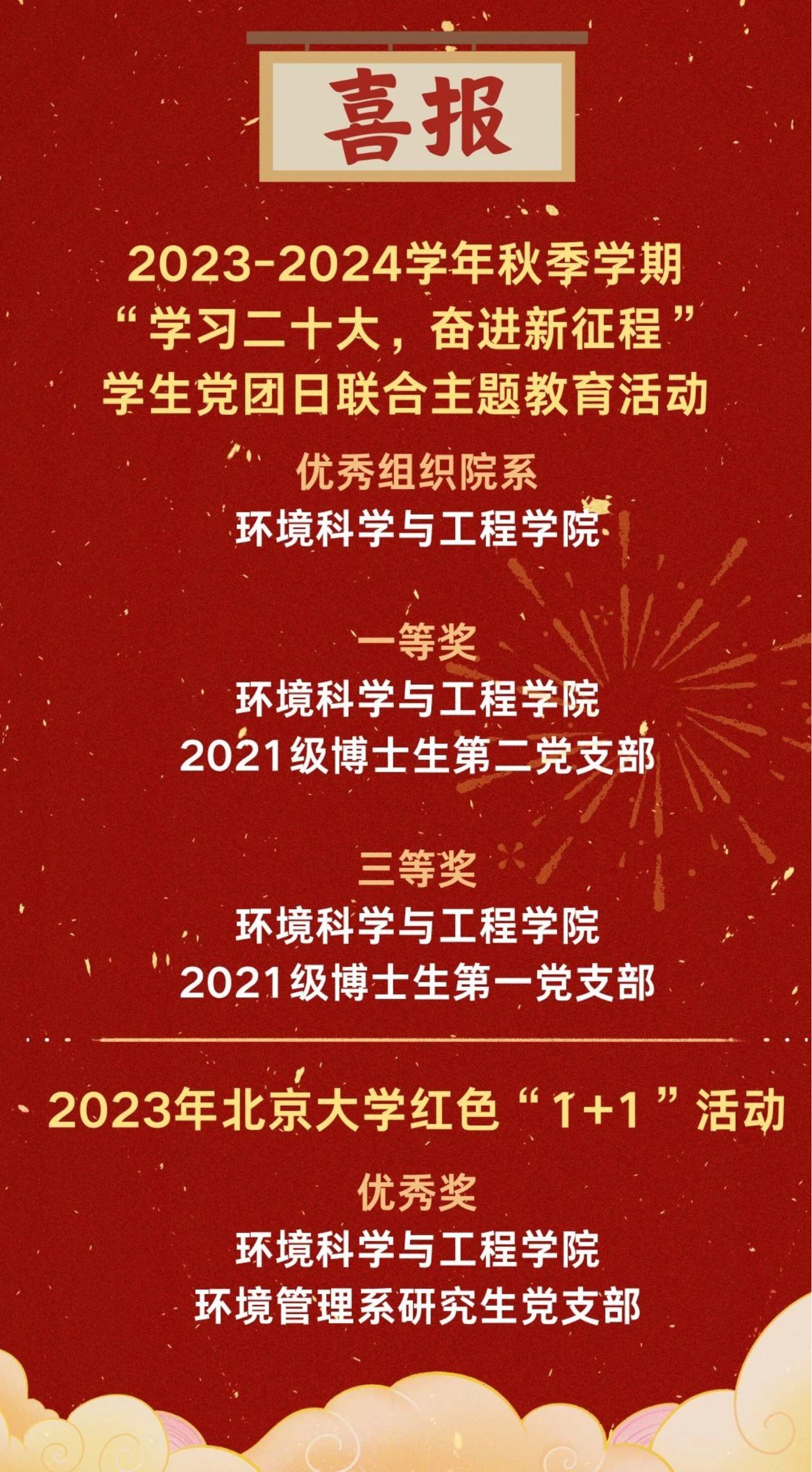 3月4日,学校公布2023-2024学年秋季学期“学习二十大,奋进新征程”学生党团日联合主题教育活动的表彰决定,环境科学与工程学院获优秀组织奖;环境科学与工程学院2021级博士生第二党支部获一等奖;环境科学与工程学院2021级博士生第一党支部获三等奖。环境科学与工程学院环境管理系研究生党支部在2023年欧美大片ppt免费大全红色“1+1”活动中获优秀奖。