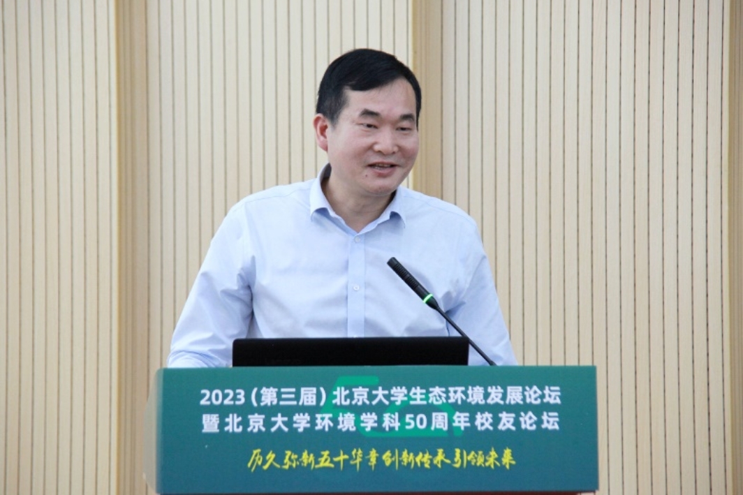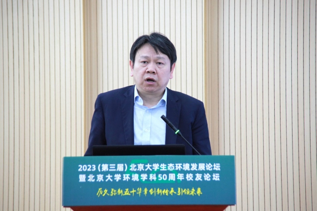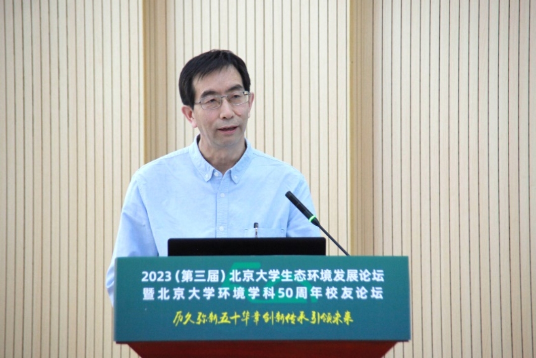 朱彤讲述了北大环境学科的发展历程和面向未来的思考。他表示,北大环境学科经过50年的求索与积累,已全面建成了具有北大学科交叉特色、服务国家战略需求的环境“科学-工程-健康-管理”全链条环境学科体系。近年来,北大环境学科聚焦重大基础科学前沿,持续打造环境科技创新全链条,以坚实的基础研究支撑国家区域流域环境治理、履行全球环境公约。当前,全球可持续发展面临多重挑战,中国与全球发展的绿色低碳转型正当其时、势在必行。他指出,要加快发展“环境+”学科群共同体,构建交叉融合的绿色科技创新体系,通过全球保护环境的共同行动,为推动全球人与自然和谐共生的实现贡献智慧力量。